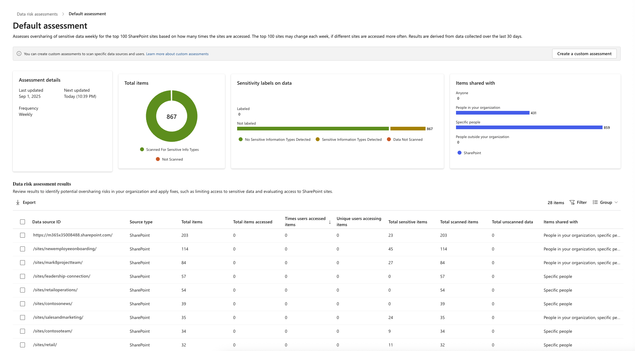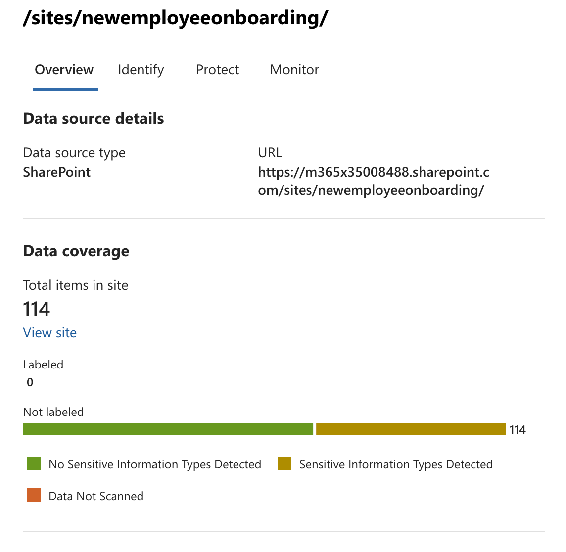 This summary gives you a quick understanding of how well your environment is aligned with your sensitivity labeling and DLP strategy.