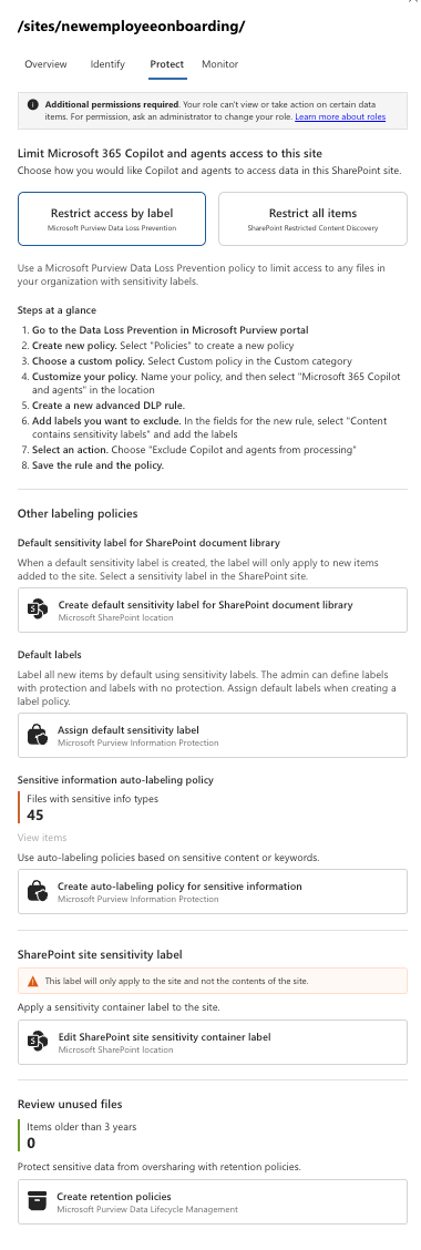 - Apply a SharePoint site sensitivity label (controls site access, not file content)